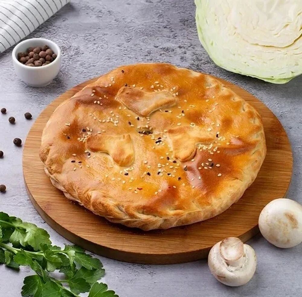 Пирог с капустой, грибами и луком