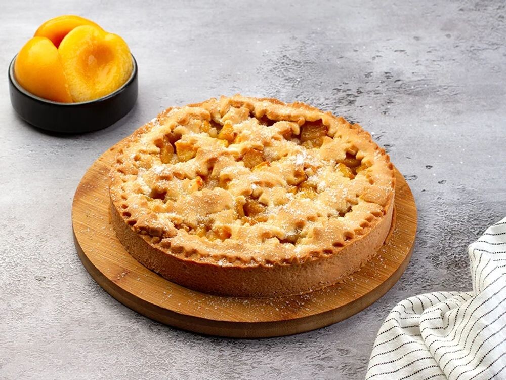 Закрытый пирог с персиками на песочном тесте