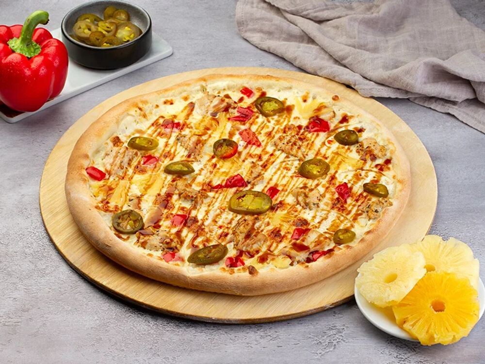 Сыр моцарелла, ананас, куриное филе, халапеньо