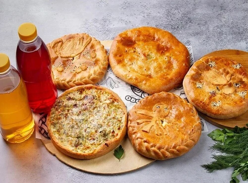 Киш «Семга брокколи», Пирог с говядиной, картофелем и луком, Пирог с форелью, картофелем и луком, Пирог с бараниной картофелем и луком, Осетинский пирог с сыром и зеленью